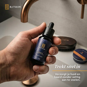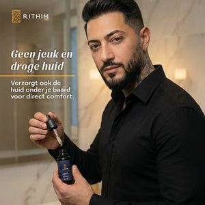 Wow, ik was laatst dus geheel nietsvermoedend en totaal onschuldig aan het bestaan in mijn woning toen ik opeens een pakketje kreeg van Rithim. HOE DAN?! Ik had niks besteld hè?! Ik zweer! Want ik mag pas weer in 2026 bestellen vanwege mijn Smooth Oudh verslaving. En maar ik was dus maximaal verrast door deze verrassing en vooral ook omdat er iets in het pakketje bleek te zitten. Namelijk: Black Cherry Baardolie. Ik had deze geur nog niet eerder geprobeerd, dus ook daardoor was ik totaal verrast. Het is een heerlijke, behoorlijk fruitige, frisse geur. Mijn oudste dochter zei meteen dat ze er parfum van wilde toen ze 'm rook. Misschien zei ze dat om aardig te doen, maar dat weet ik niet zeker. Ik heb de olie inmiddels een paar keer getest en gemerkt dat ik maar vier druppels nodig heb om mijn gehele baard (ongeveer zes centimeter) zacht en gezond glanzend te krijgen. Het aanbrengen voelt echt totaal episch door die heerlijke geur. Na het aanbrengen had ik geen vette handen en m'n baard gaf ook geen vettigheid af, dus de olie wordt echt goed opgenomen. Tien punten! Zelfs met maar vier druppels ruik je de geur erg goed en deze blijft lang hangen. Het pipetje werkt ook prima trouwens. Wederom een topproduct van Rithim!